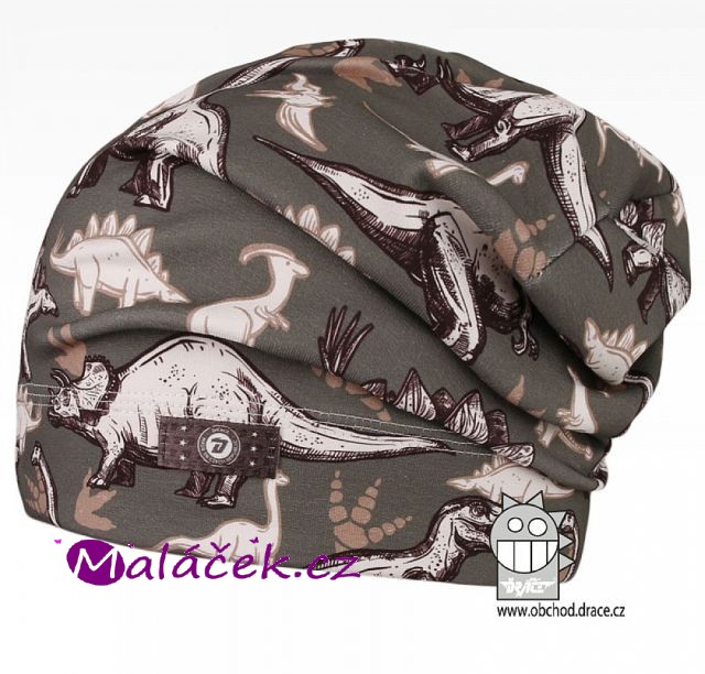 • Dráče bavlněná celopotištěná spadlá čepice vzor 16, khaki zelená dinosauři