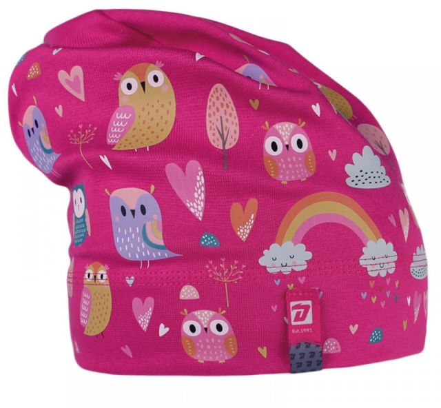 Dráče bavlněná spadlá čepice Pepe vzor 30 - malinová sovy