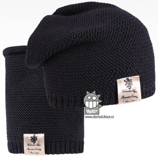 Zimní set moderní pletené čepice spadlého střihu s nákrčníkem v široké nabídce barev.