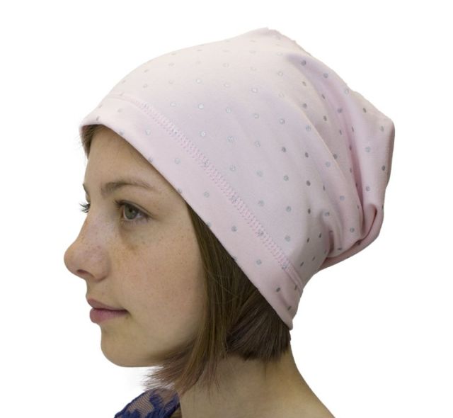 - Fantom Delší úpletová čepice růžová stříbrné puntíky