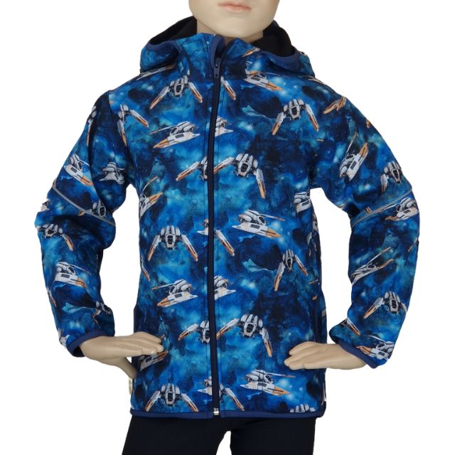 Dětská softshellová bunda od českého výrobce FANTOM. Softshellová bunda s motivem vesmírných lodí.