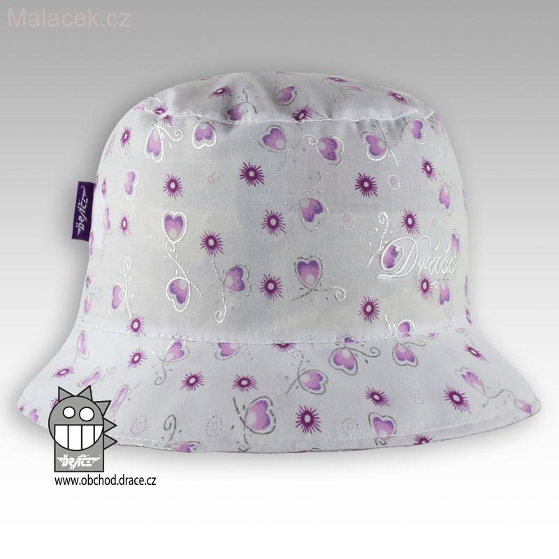 Letní klobouk Dráče Hawaii - vzor 45, bílý fialová srdíčkaSkladem 2 ks180 Kč/ ks149 Kč bez DPH