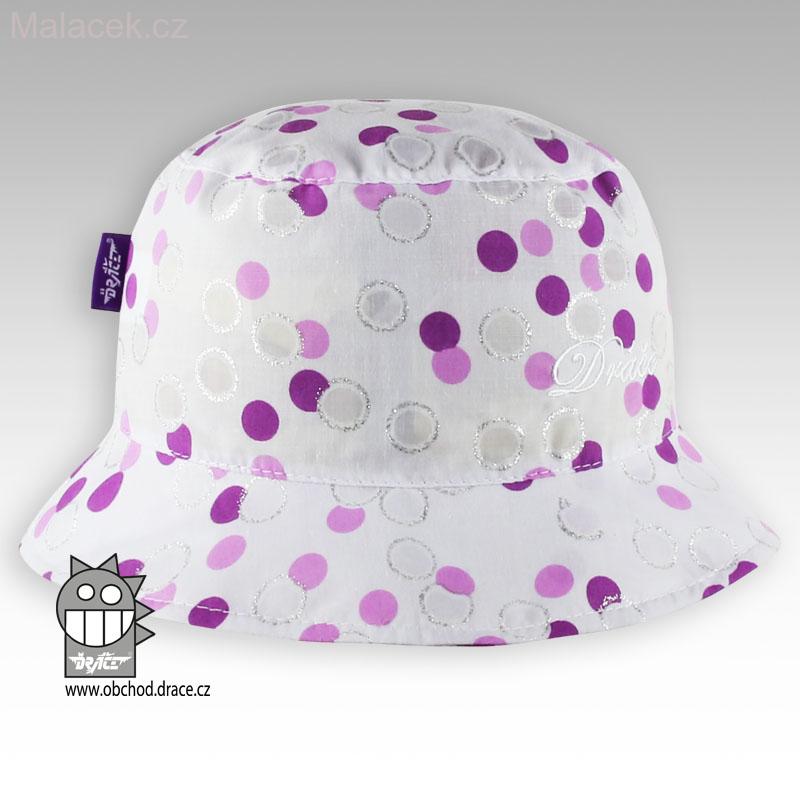 Letní klobouk Dráče Hawaii - vzor 48, bílá s fialovými puntíkySkladem > 5 ks180 Kč/ ks149 Kč bez DPH