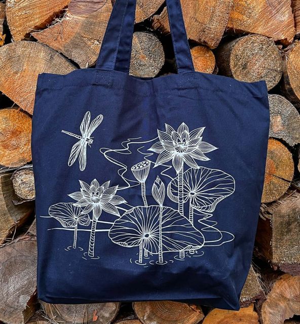 Lucie Ernestová Ekotaška XL Lotos a vážka - tmavě modráSkladem 1 ks220 Kč/ ks182 Kč bez DPH