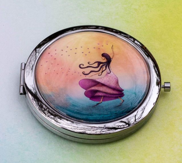 Krásné kvalitní kosmetické zrcátko do kabelky s autorským obrázkem Lucie Ernestové. Motiv je krytý epoxidovou čočkou.