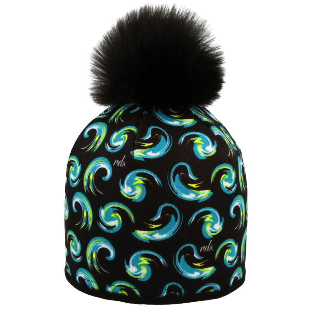 - RDX Zimní čepice Vlnky, podšívka MERINO, černá, modro-zelené vlnky