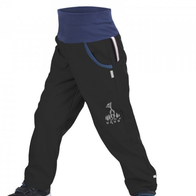 Unuo dětské softshellové kalhoty BASIC černé s EVŽENEM VEL. 104-110